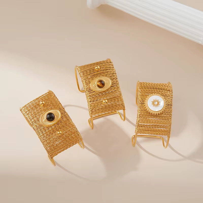 3pc Wide Natural Stone Cuff Bracelet