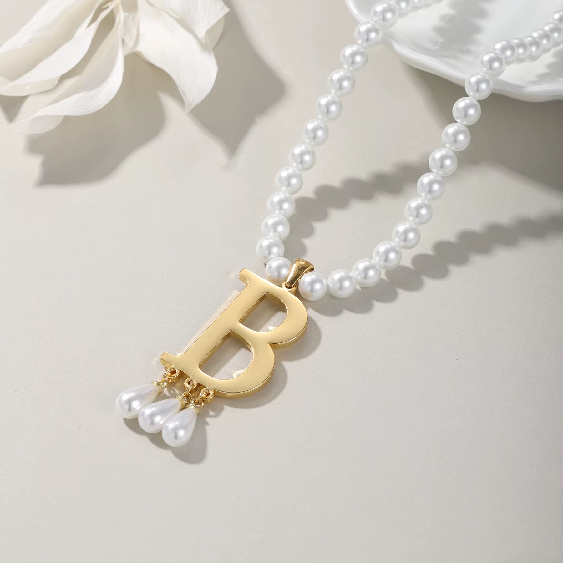 Style: This elegant necklace features a lustrous pearl chain paired with a bold A–Z initial charm, blending classic beauty with a personal touch. Perfect for layering or wearing solo as a statement piece.