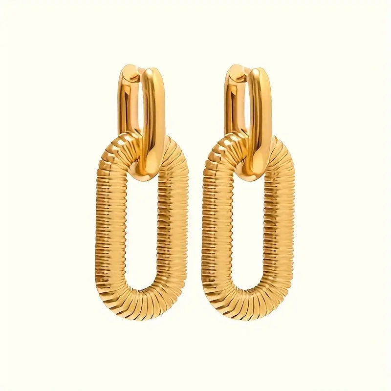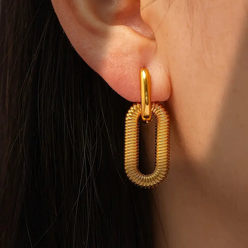 Style: These geometric dangle earrings feature elongated oval shapes with clean lines and modern elegance. Their lightweight design and minimalist silhouette make them a versatile statement for day or night.