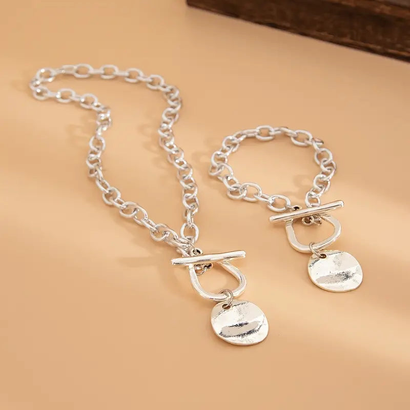 Style: This Toggle Disc Jewelry Set features sleek circular disc pendants with modern toggle clasps for a contemporary, minimalist aesthetic. The coordinated two-piece collection offers effortless sophistication, perfect for creating a polished look that transitions seamlessly from day to evening.